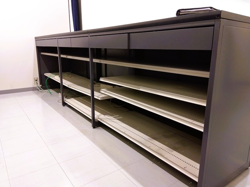 東側備え付けカウンター・更衣室(カウンター左から奥がバックヤード)- 店舗サブ画像