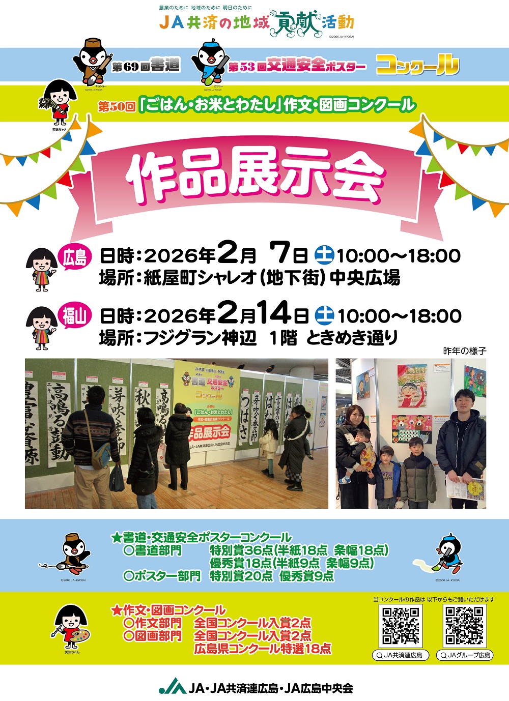 第69回書道・第53回交通安全ポスターコンクール/第50回「ごはん・お米とわたし」作文・図画コンクール 作品展示会