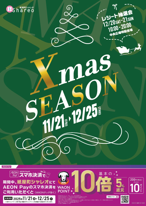 | シャレオ クリスマスシーズン レシート抽選会の詳細はコチラ |